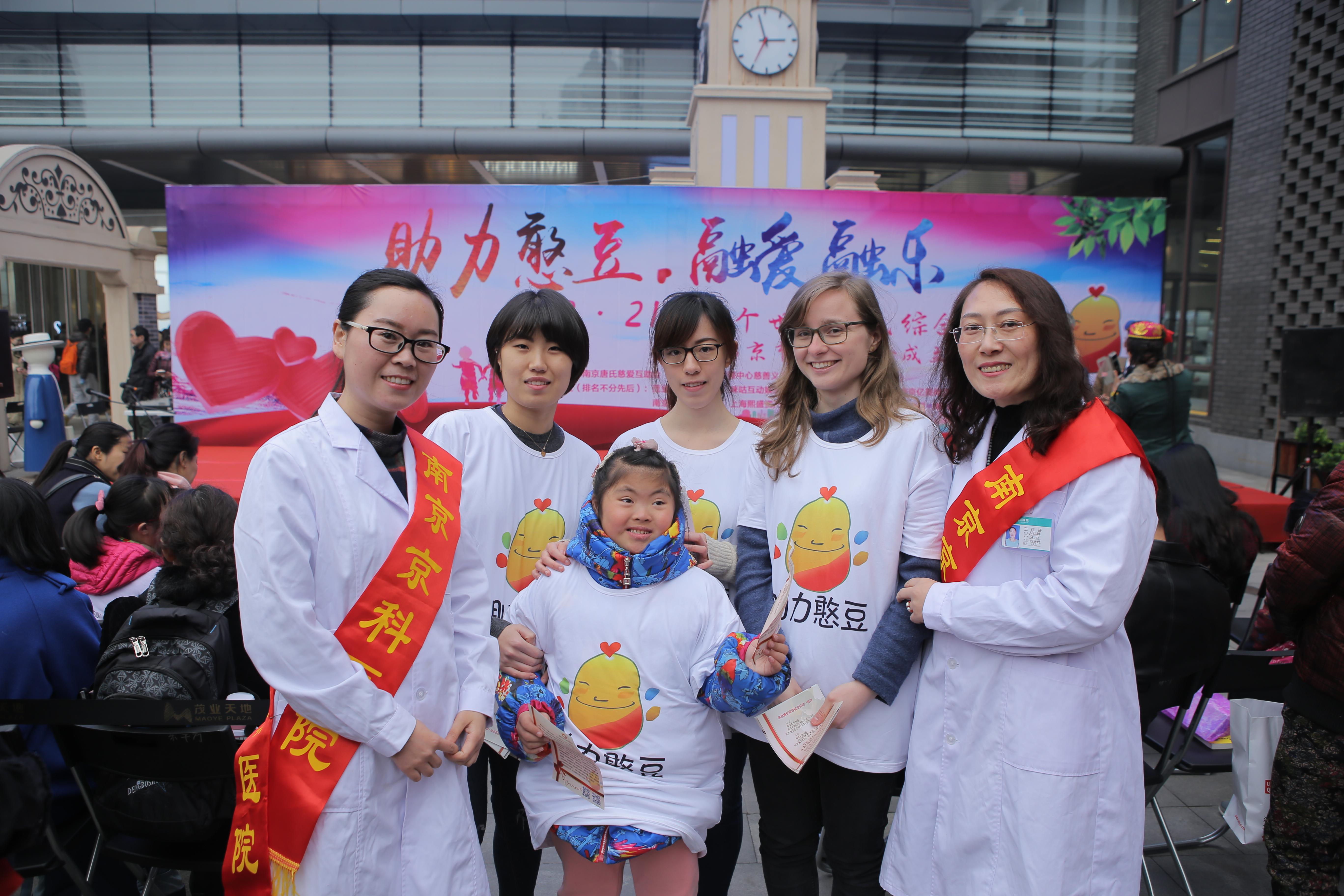 2017年3月18日下午,在第六届世界唐氏综合征日到来之际,南京市慈善总会携手南京妇儿堂医院在南京市著名旅游景区夫子庙茂业天地广场开展以“助力憨豆·融爱融乐”为主题的义演、义捐、义卖义诊的大型慈善活动。